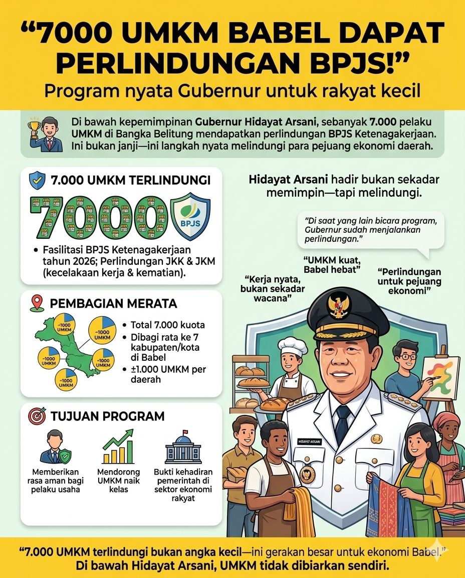 sebanyak 7.000 UMKM di Bangka Belitung kini mendapatkan perlindungan BPJS Ketenagakerjaan.